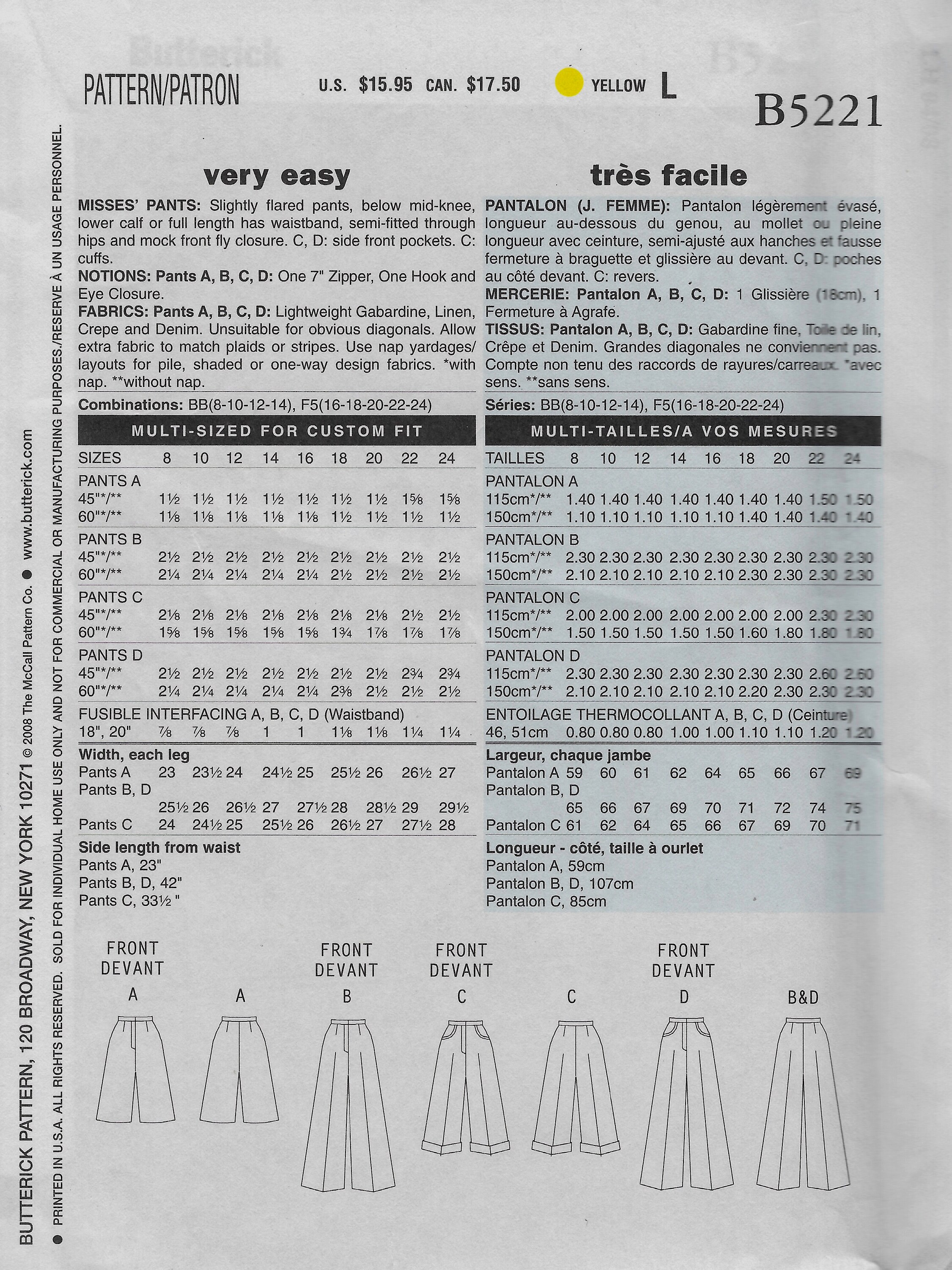Deep armhole three quarter sleeves with. The classic pants pattern was drafted using Connies signature method which creates beautifully fitting pants for many figure types. Web Find many great new used options and get the best deals for new sewing patterns butterick 5221 uncut 8 10 12 14 at the best online prices at eBay.